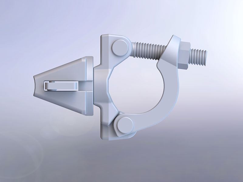 One end of the wedge head coupler right angle is connected to the ringlock, with the other arbitrarily connected to a tube. The surface treatment is hot dip galvanization.